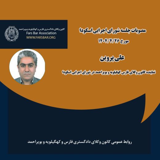 نماینده کانون وکلای فارس کهگیلویه و بویراحمد در شورای اجرایی اسکودا