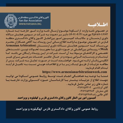 سومین دوره هفته داوری بینالمللی ارمنستان